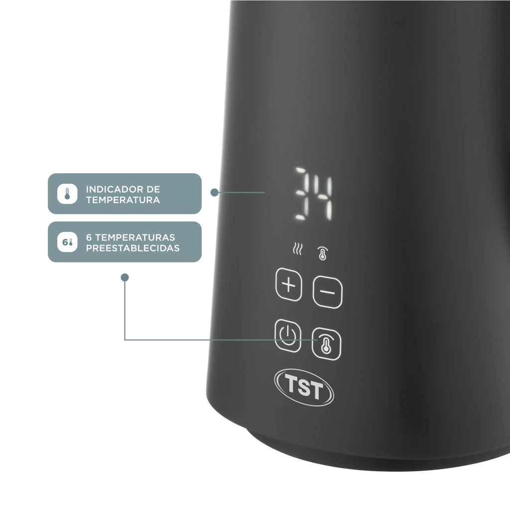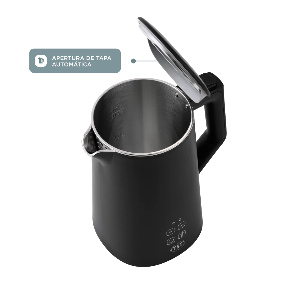 La pava eléctrica digital TST combina diseño moderno y precisión en cada detalle. Su pantalla digital y controlador de temperatura permiten elegir la temperatura ideal para cada infusión mientras su exterior plástico seguro al tacto brinda comodidad y seguridad en el uso diario.